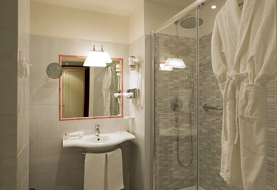 Elegant air-conditioned room with free WiFi, a mini-bar and satellite TV. The bathroom is complete with toiletries and a hairdryer.